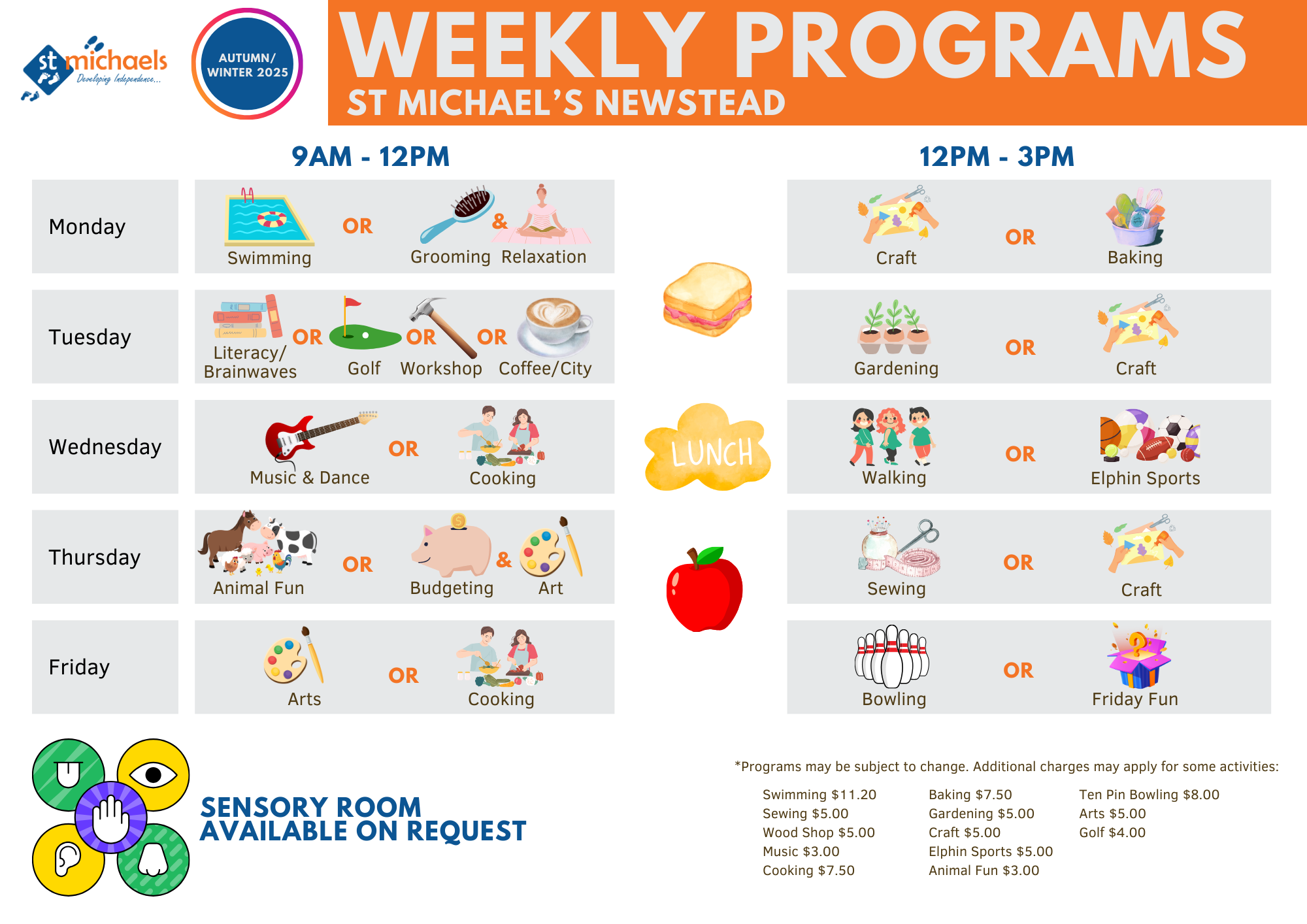 We’ve developed an extensive annual program of in-house and Day Program activities that support you to improve your health, wellbeing and life skills.